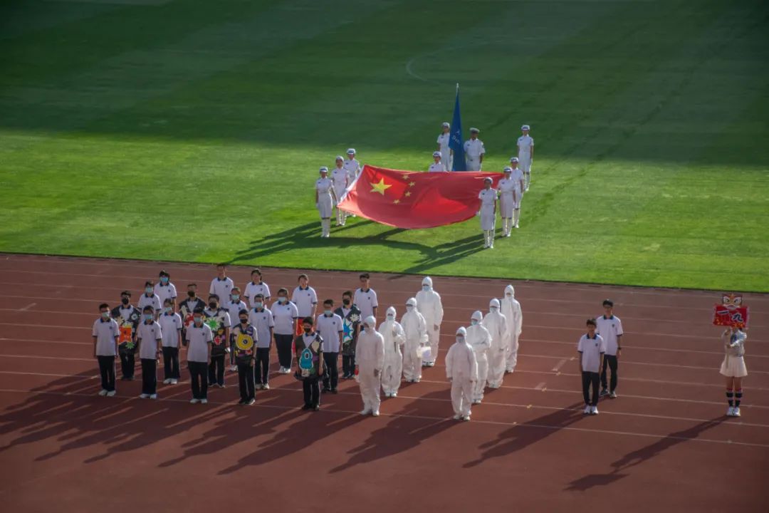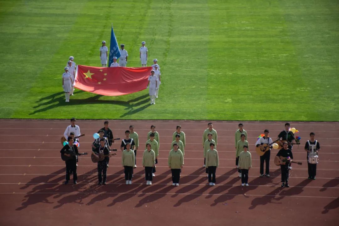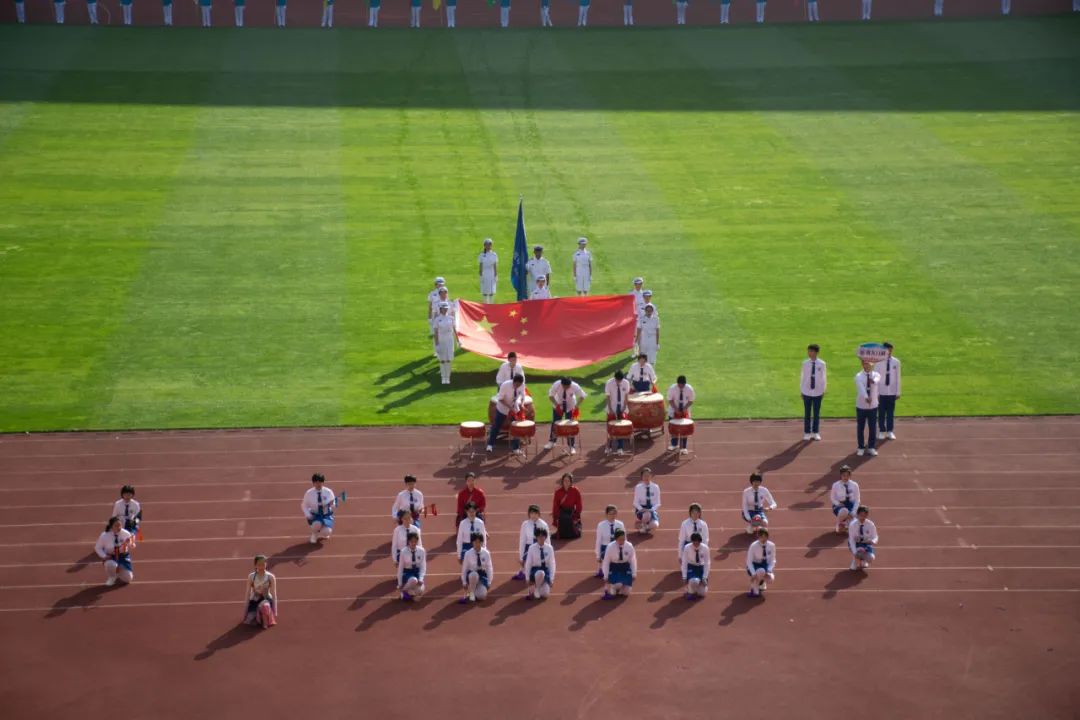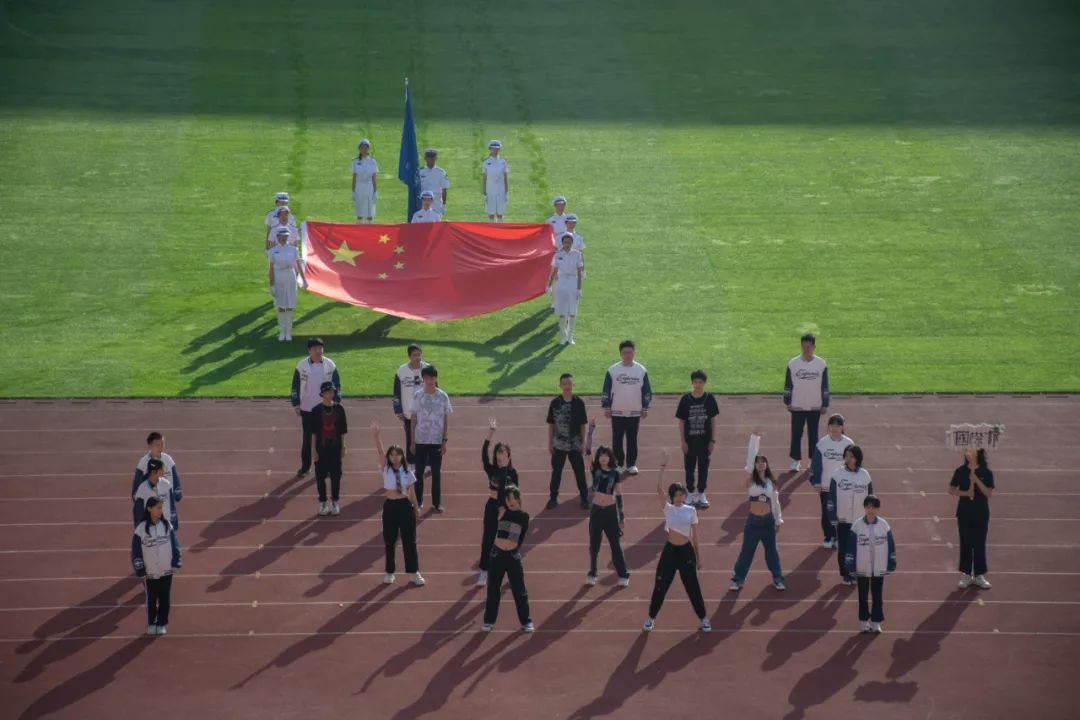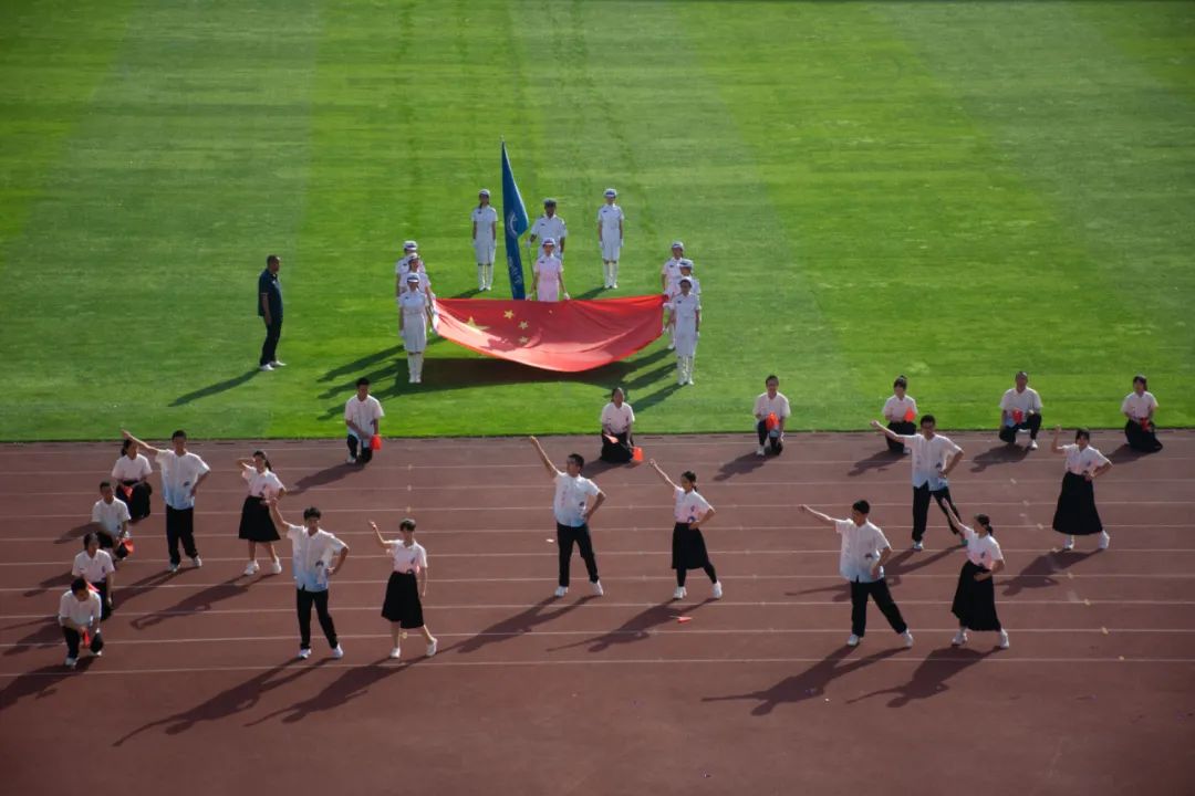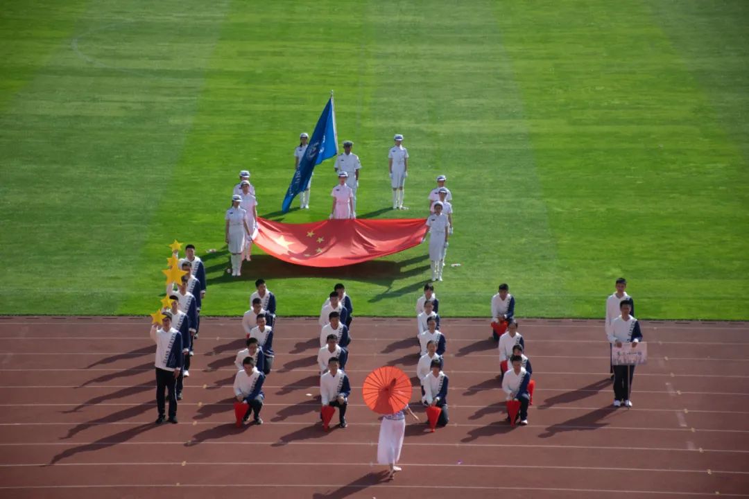 龍騰虎躍複興際,海晏河清盛世年。7時30分許,各支代表隊在操場隆重集合,舉行開幕儀式。一時間,鼓韻鏗鏘,彩旗招展,朝陽普照,氣象萬千。古風舞、民族舞、流行舞,曼妙絕倫裊娜多姿,青春風采迸濺激蕩;軍體拳、擂戰(zhàn)鼓、大合唱,雄渾豪邁氣勢恢弘,拳拳古意源遠流長;慶華誕、戰(zhàn)疫情、行宇宙,愛國之情內(nèi)化于心,報國之志外化于形。有道是:一唱雄雞天下白,萬方樂奏有于闐。