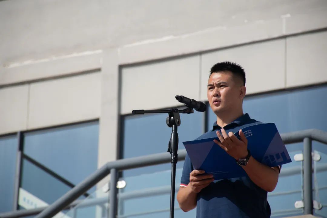 高屋建瓴揚新帆,健兒摩拳躍欲試。9時10分許,學生處彭喜治主任宣布田徑運動大會正式開幕。全體師生升國旗、唱國歌。隨後,金年会李振權(quán)校長為運動會緻辭,為今日之奮鬥指引方向;三年九班沈瑾代表全體運動員講話;遲雲(yún)東老師代表全體裁判員發(fā)言。9時20分,宣布本次田徑運動大會比賽項目正式開始。